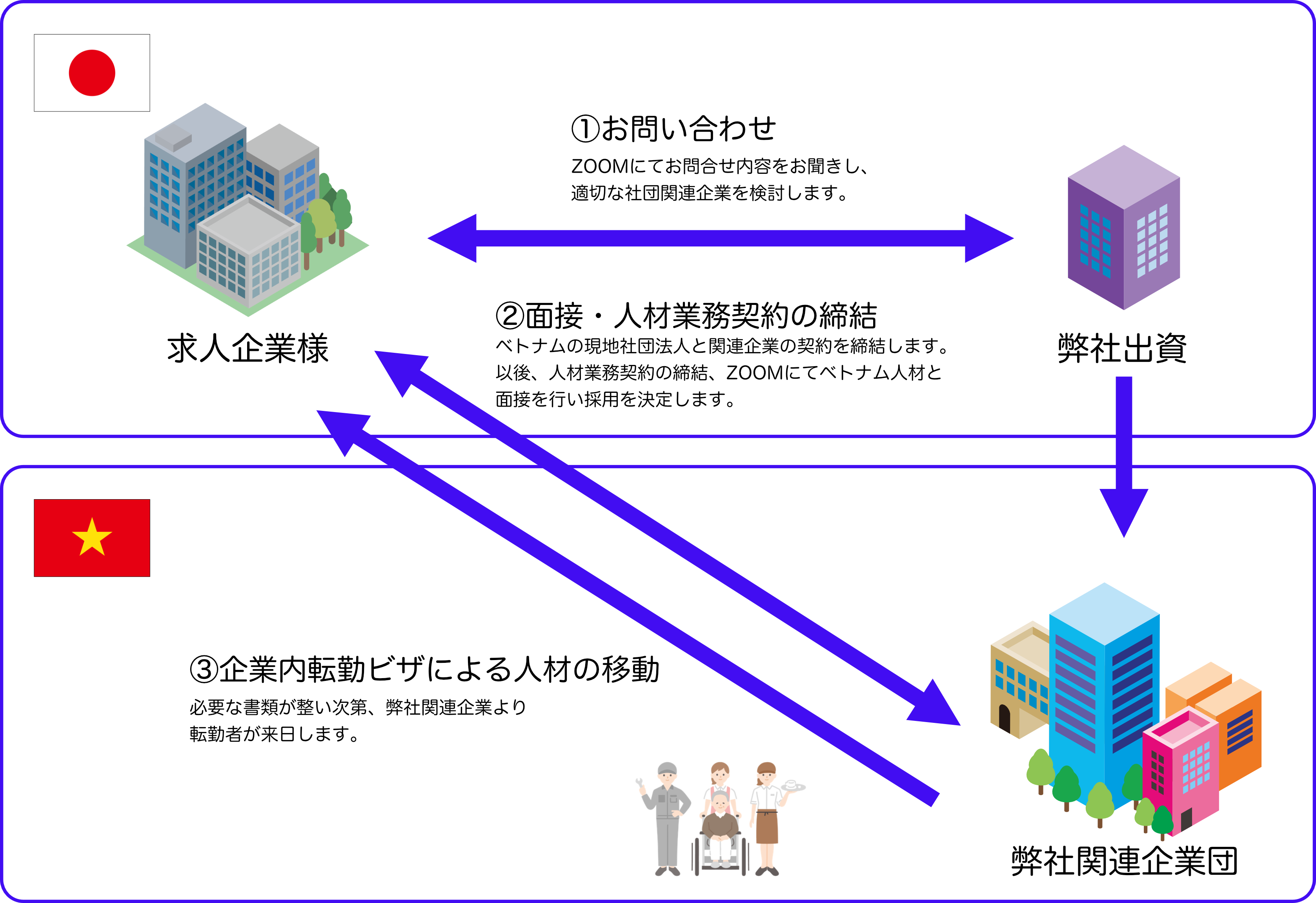 また、ベトナムに事業所をお持ちでない求人企業様でも、弊社と